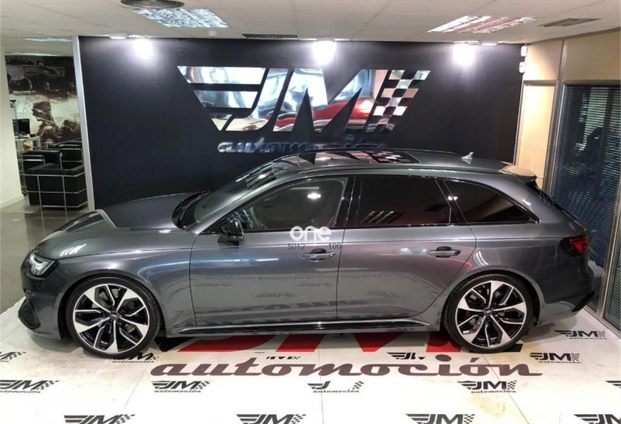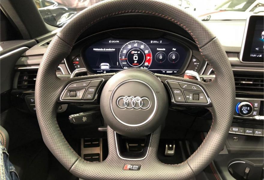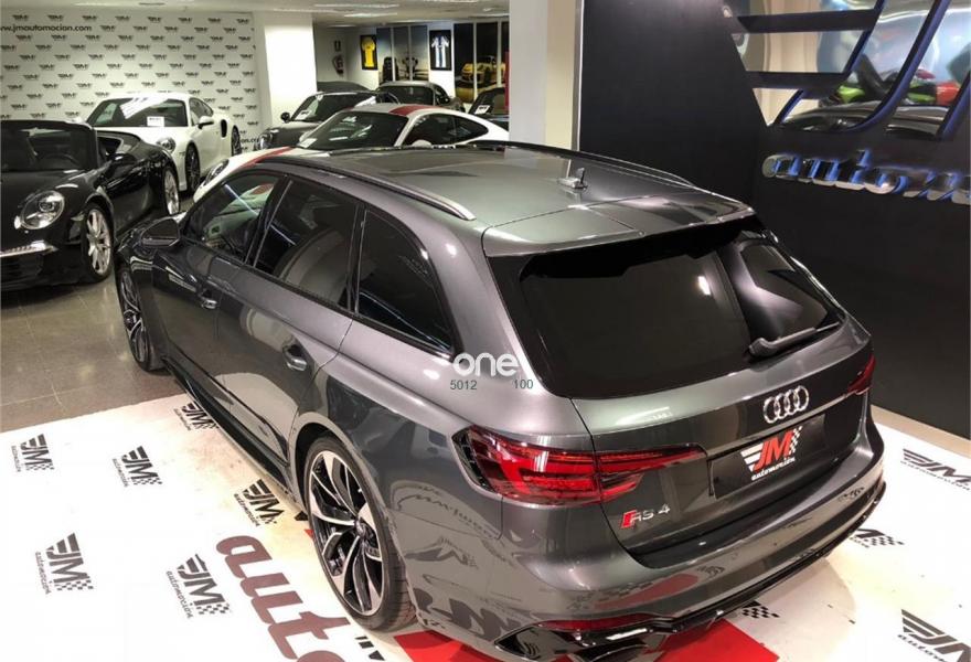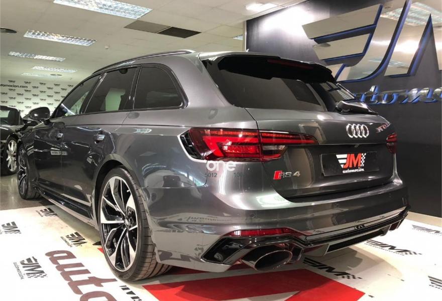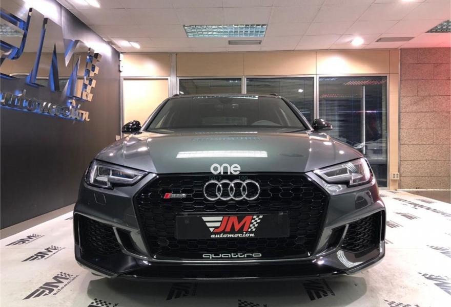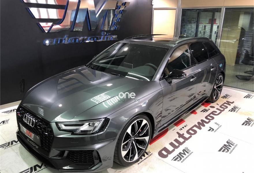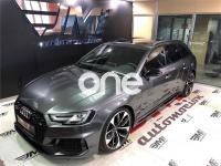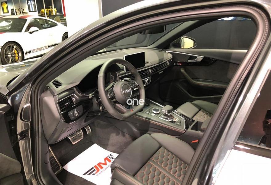 AUDI A4, Gasolina, año 2018, 63 kilómetros, color Gris / Plata metalizado, precio 99900€. VEHICULO A ESTRENAR!!!! NACIONAL!!! ENTREGA INMEDIATA!!!{[n]}Audi RS 4 Avant 2.9 TFSI quattro 331(450) kW(CV) tiptronic{[n]}Color exterior: Gris Daytona efecto perla [6Y6Y] {[n]}Color Interior:negro-negro-rojo crescendo / negro-negro / {[n]}Paquete de asistencia City (PCM) {[n]}Techo panoramico de cristal (3FU) {[n]}Barras de techo en negro (3S2) {[n]}Lacado brillante negro Audi exclusive (madera con acabado negro Piano) {[n]}Carcasa de los retrovisores exteriores en negro brillante Audi exclusive {[n]}Llantas alu. forjado Audi Sport diseño Edge de 5 radios dobles, negro antr., tam. 9 J x{[n]}20 con neu. 275/30 ZR 20 (PQQ){[n]}Acabado en cuero napa fina con diseño panal (N1H) {[n]}Sistema para gases de escape deportivo (0P6) {[n]}Paquete óptica negro brillante (PAH) {[n]}Cámara de visión trasera.{[n]}Paquete de asistentes City {[n]}Audi Sound System. {[n]}Audi virtual cockpit {[n]}Control velocidad de crucero. Con limitador de velocidad{[n]}Manos libres Bluetooth.{[n]}MMI navegación {[n]}Radio MMI.{[n]}Asientos delanteros con regulación eléctrica.{[n]}A.