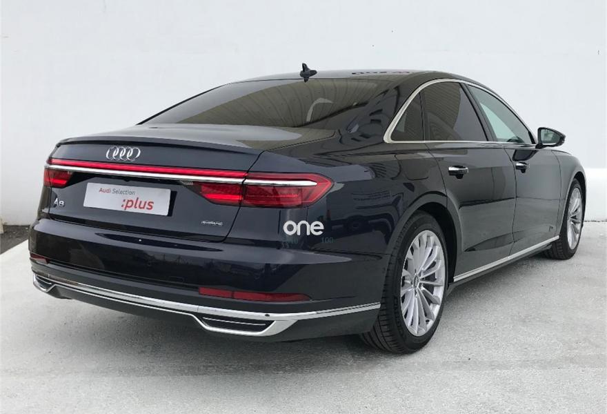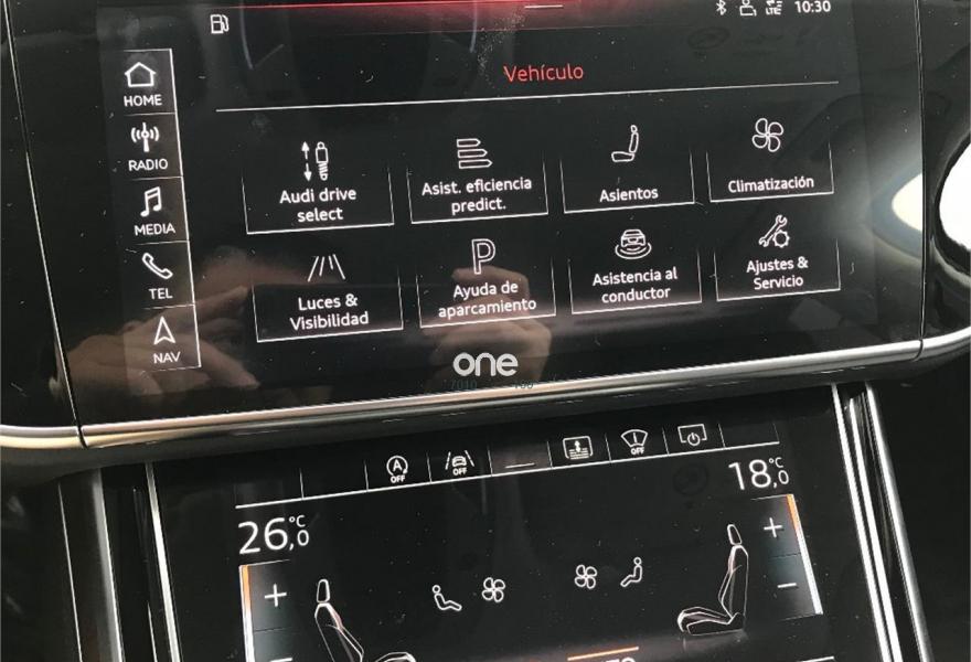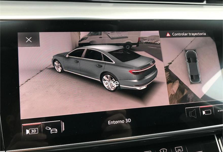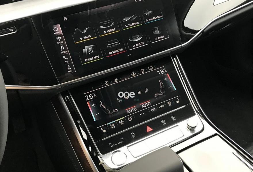 AUDI A8, Diesel, año 2018, 200 kilómetros, color Azul metalizado, precio 97500€. Carga inalámbrica de móvil,Reconocimiento de señales basado en cámara,Asientos delanteros de confort con función memoria,Tapiceria en cuero Valcona,Radio digital y televisión digital con sistema de televisión de pago,Televisión digital,Apertura y cierre eléctrico del maletero,Audi phone box,Audi side assist con pre sense rear, exit warning y cross traffic assist,Botones operativos en negro brillante con respuesta háptica y óptica de aluminio ampliada,Climatizador automátco de cuatro zonas,Control remoto parte trasera,Cortinilla eléctrica en luneta y ventanas laterales posteriores,Inserciones inferiores en aluminio mate cepillado oscuro,Lavafaros,Limpiaparabrisas con eyectores integrados,Paquete de asistentes City,Paquete de asistentes Tour,Paquete de cromo exterior,Paquete de cuero ampliado,Retrovisores exteriores ajustables/abatibles eléctricamente antideslumbrantes automáticamente con función memoria,Sistema de control de presión de neumáticos,Azul Lunar (metalizado),Cristales laterales y luna trasera insonorizantes,Pintura metalizada,Head-up display,Llantas de aleación 9 J x 19 diseño de 15 radios con neumáticos 255/45 R 19,4 cámaras de entorno,Audi active lane assist con asistente de emergencia y cámara de reconocimiento de señales. Precio sujeto a financiación con Volkswagen Financial Services. Precio contado 99.500€. Se acepta vehículo a cambio previa tasación.