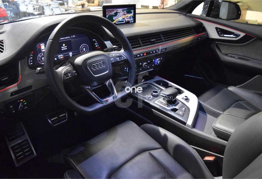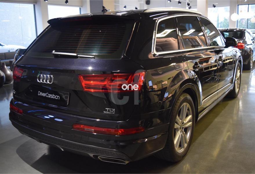 AUDI Q7, Diesel, año 2017, 950 kilómetros, color Negro metalizado, precio 77900€. Apoyabrazos central delantero de confort,Asientos delanteros eléctricos confunción memoria para el conductor,MMI Navegación plus con MMI Touch,Sistema de sonido BOSE Surround 3D,Cable USB,Paquete exterior S line,Volante deportivo de cuero multifuncional de 3 radios con levas de cambio achatado,Capacidad del depósito de 85 l.,Negro Orca (metalizado),Llantas de aleación 9J x 20 pulidas gris diseño estrella de 10 radios con neumáticos 285/45 R 20,3ª fila de asientos,Audi virtual cockpit. *GARANTIA OFICIAL AUDI 36 MESES