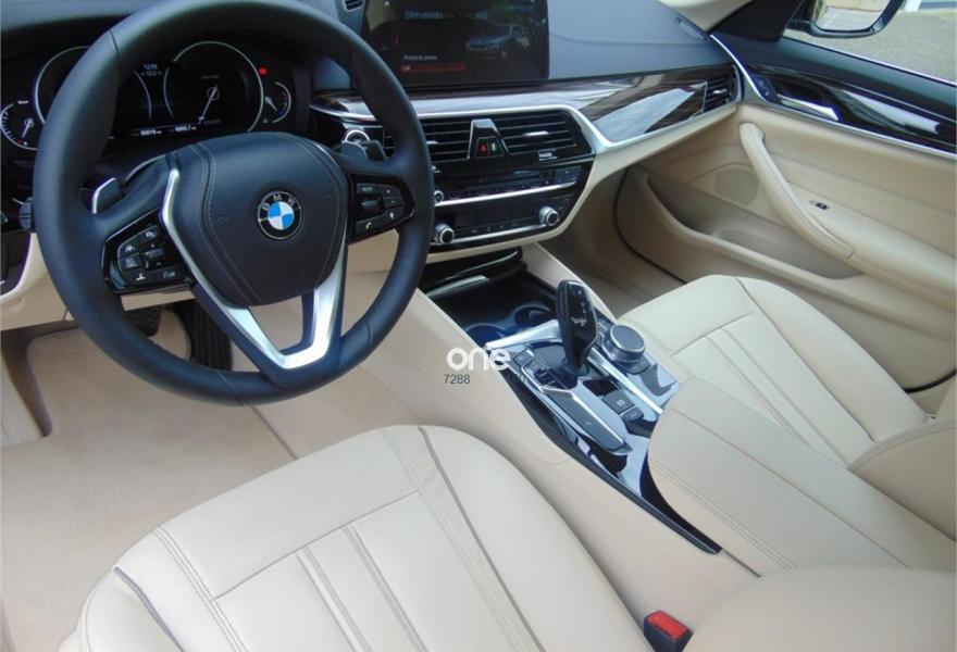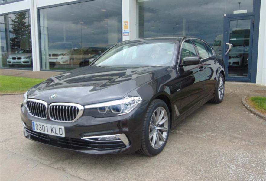 BMW Serie 5, Diesel, año 2018, 15 kilómetros, color Marrón (Jatoba) metalizado, precio 49900€. Cuero 'Dakota',Revestimiento de madera noble 'Fineline' Ridge con moldura de acentuación cromo de brillo perlado,Sistema de navegación Professional,Asistente de luz de carretera,Cuero 'Dakota' Canberrabeige con costura exclusiva/burlete contraste/Canberrabeige,Línea cromada exterior,18", llantas de aleación ligera de radiosen V (estilo 684),Jatoba (metalizado),Luxury Line,Neumáticos con funcionamiento en caso de avería,Pintura metalizada,18", llantas de aleación ligera de radiosen V (estilo 684), con funcionamiento en caso de avería,Caja de cambios Steptronic con levas de cambio,Driving Assistant Plus. Vehículo de Km 0, a estrenar.