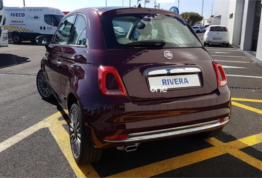 FIAT 500, Gasolina, año 2018, 9 kilómetros, color Granate , precio 10900€. Fiat 500 Lounge color Burdeos con motor 1. 2 de 70 cv con caja manual de 5 velocidades. Cuenta con un acabado Lounge de interior en tela con volante en cuero y pantalla táctil con conexión aux, y usb, incluido la función Bluetooth y climatizador. Llantas de aleación y techo panorámico.