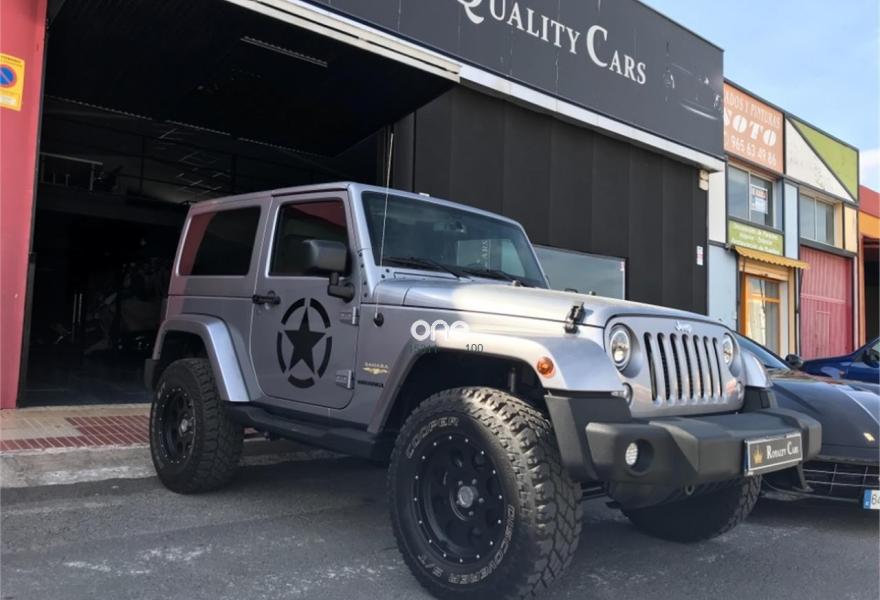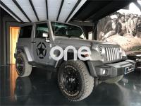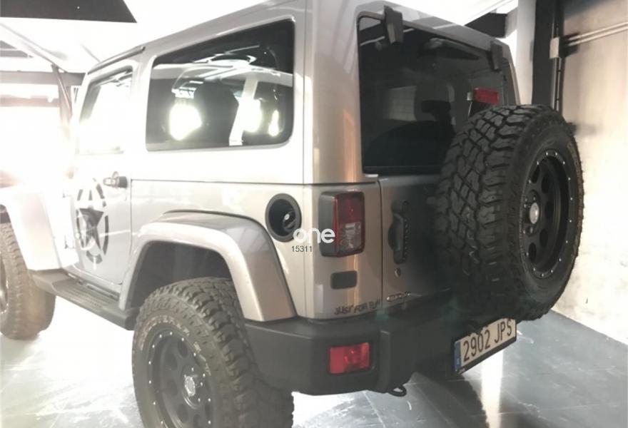 JEEP Wrangler, Diesel, año 2016, 1700 kilómetros, color Gris / Plata metalizado, precio 51500€. Doble techo: Techo duro Freedom Top color carrocería + Capota de lona color negro,Techo Duro 'Freedom Top' del color de la carrocería. Tapicería de cuero negro con pespunte planco, cambio automático con reductora, hardtop color carrocería, navegacion plus,radio Fe, mp3, usb, teléfono bluetooth, paquete sonido alpine, altavoces integrados en el techo, estribos laterales, Lunas tintadas, faros de leds, volante multifuncional, Cruise control, climatizador bizona, llantas especiales 17 discover, esp, coche de reestreno .