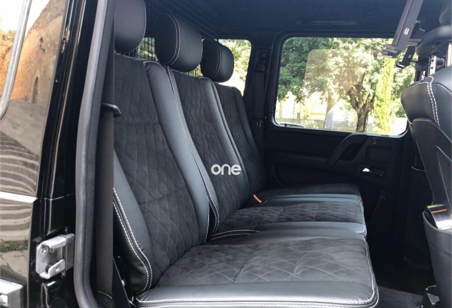 MERCEDES-BENZ Clase G, Gasolina, año 2017, 1000 kilómetros, color Negro , precio 239900€. Kit de cables para Media Interface,Microfibra DINAMICA en color negro,Paquete de telefonía universal,Telefonía a bordo del automóvil. Vehículo NACIONAL solo estrenado. Entrega inmediata . Unidad equipada con tapicería completa de cuero, asientos eléctricos con memorias ventilados y calefactados, calefaccion estacionaria, techo eléctrico, volante de cuero y alcántara, acabados interiores en carbono, cámara de aparcamiento, selección de bloqueo de diferenciales, sistema de sonido Harman Kardon, estribos de acceso laterales, LEDs en techo con fibra de carbono, guardabarros de fibra de carbono, sistema de Wi-Fi, entretenimiento en plazas traseras, llantas de 22'', etc. Cambio de nombre y garantía incluidos en el precio..
