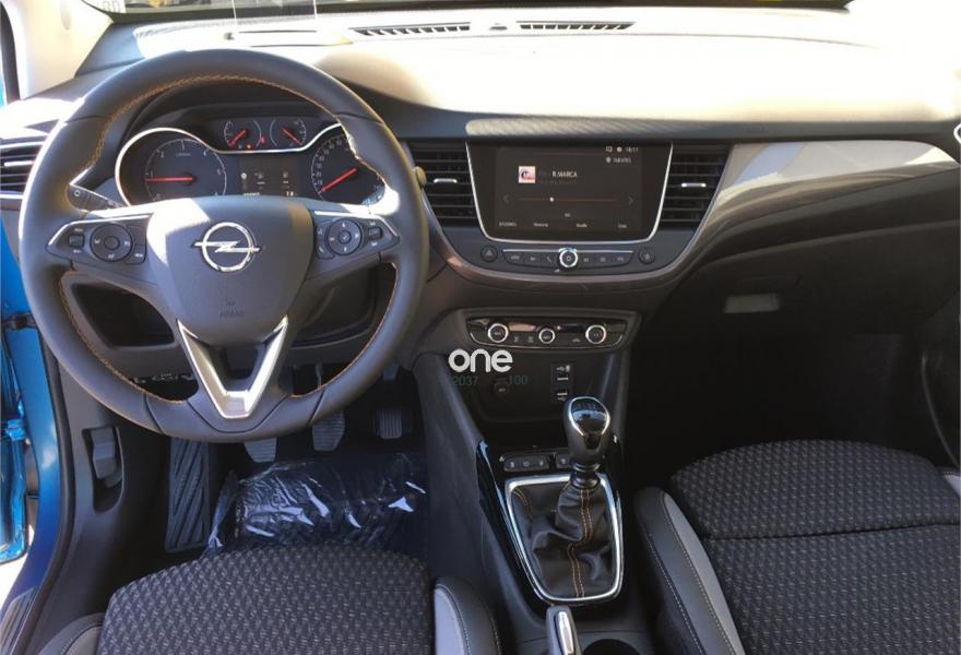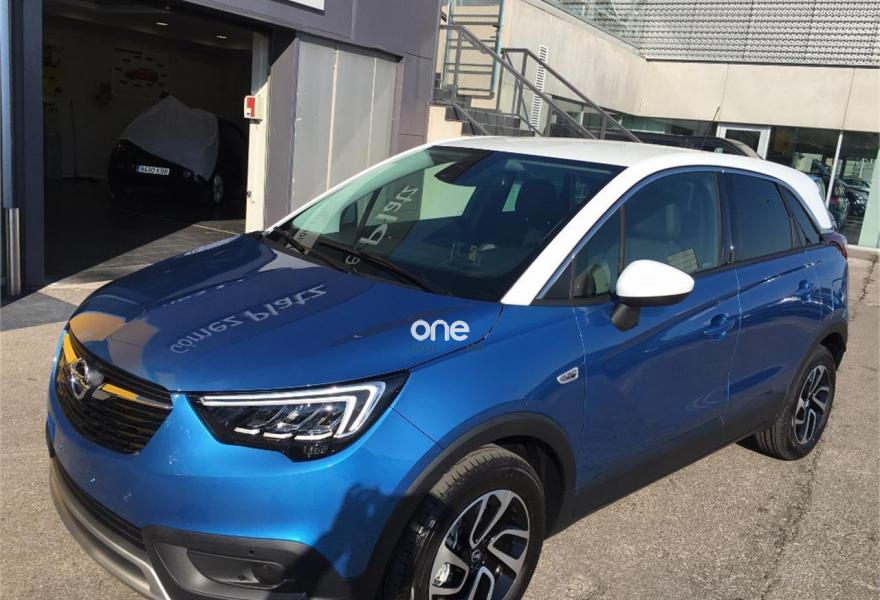 OPEL Crossland X, Gasolina, año 2018, 100 kilómetros, color Azul (techo blanco excellence 110 CV gasolina) metalizado, precio 17295€. Tapicería Morrocana "Florey" con asientos ergonómicos con certificación AGR para conductor y acompañante,Sistema de Apertura y Arranque sin llave Open & Start,Azul Bahía (metalizado),Pintura metalizada,Rueda de repuesto 16". Concesionario oficial OPEL,perteneciente al grupo Motor Gomez,Audi,Seat,Volkswagen,Kia,Skoda,Suzuki,Toyota,BMW,Mini,Peugeot.