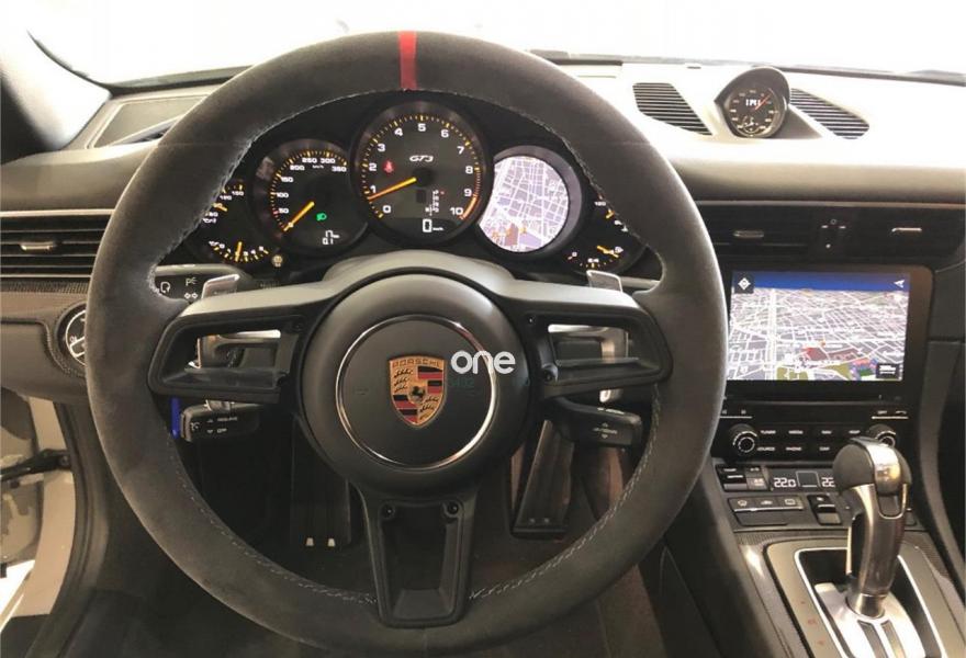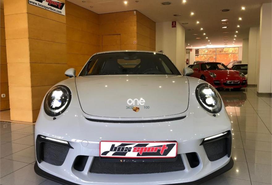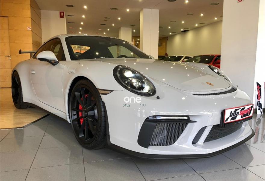 PORSCHE 911, Gasolina, año 2018, 50 kilómetros, color Blanco metalizado, precio 219900€. Asientos deportivos Bucket,6-Punkt-Gurt für Beifahrerseite,Cinturones delanteros y traseros en rojo guardia,Luces principales LED incluyendo Porsche Dynamic Light System Plus (PDLS+),Marcas a las 12 en el volante en el color rojo,Paquete Sport Chrono Package incluyendo mode switch,Paquete interior en Carbono (combinado con interior en cuero),Depósito de combustible de 90 litros,Crayón (especial),Sistema de elevación del eje delantero,Sistema de ayuda aparcamiento incluy. cámara trasera,Paquete Club sports. Entrega inmediata , último GT3 con motor atmosférico, equipado con pintura especial crayón, sport chrono plus, paquete club sport, paquete interior en carbono,lift system, faros led en negro, asientos bucket, etc. Precio sin impuestos 160.510.-€..