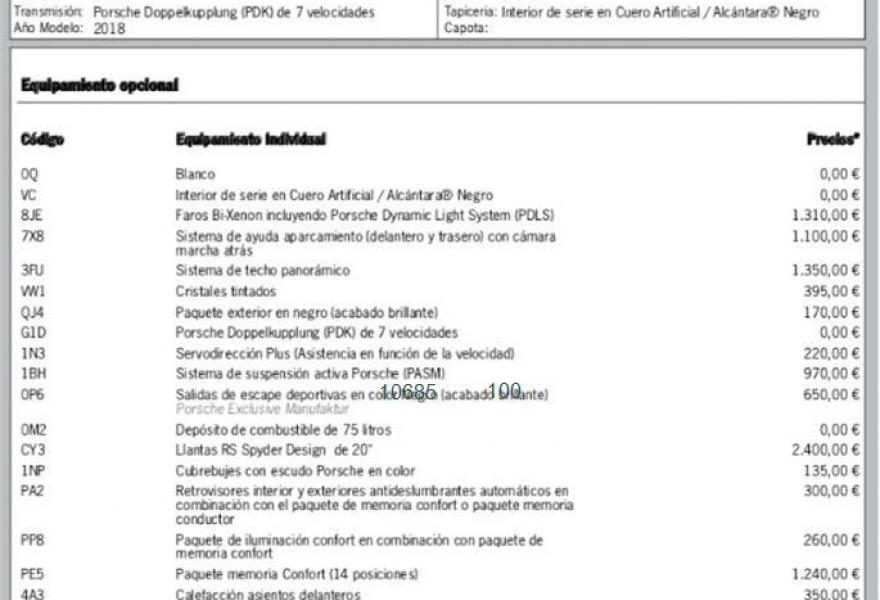 PORSCHE Macan, Gasolina, año 2018, 300 kilómetros, color Blanco , precio 75900€. Reconocimiento de límites de velocidad,Alfombrillas,Paquete interior acabado en color negro piano,Cortinillas para las ventanillas traseras (accionamiento mecánico),Connect Plus,Cubrebujes con escudo Porsche en color,Cuero Artificial/Alcantara Negro,Faros Bi-Xenon incluyendo Porsche Dynamic Light System (PDLS),Módulo de Navegación para Porsche Communication Management (PCM),Paquete de iluminación confort en combinación con paquete de memoria confort,Paquete memoria Confort (14 Posiciones),Salidas de escape deportivas en negro,Servodirección Plus (Asistencia en función de la velocidad),Sistema de techo panorámico,Depósito de combustible de 75 litros,Blanco,Llantas de 20" RS Spyder Design,Retrovisores interior y exteriores antideslumbrantes automáticos en combinación con el paquete memoria confort o paquete memoria conductor,Sistema de escape deportivo en negro,Sistema Porsche de Suspensión Activa (PASM),Paquete exterior en negro (acabado brillante),Sistema de ayuda aparcamiento (delantero y trasero) con cámara marcha atrás,Calefacción asientos delanteros,Escudo Porsche en reposacabezas delanteros. PORSCHE MACAN GASOLINA 252 CV.