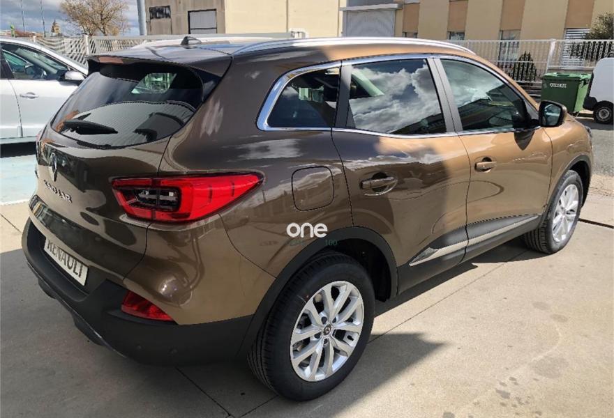 RENAULT Kadjar, Diesel, año 2018, 5 kilómetros, color Marrón (CAPUCHINO) metalizado, precio 22490€. Marrón Capuccino (metalizado),Rueda de repuesto. Kilómetro 0 . Lo estrenas Tú, está como en las fotos, nunca conducido y con los plásticos de protección. Renault Kadjar Zen dci 130 cv, de Abril de 2018. El precio incluye un dto. de 1. 000, 00€ por financiar, sino se financia el precio es de 23. 490, 00€ pago al contado. Equipado con climatizador bizona , navegador , faros full led , sensosres de aparcamiento delanteros y traseros (con cámara) , detector de angulos muertos , cambio involuntario de carril , detector de velocidad dela via , rueda de repuesto , llantas de aleación de 17 , cristales traseros sobretintados , limitador y regulador de velocidad , tapicería mixta cuero y tela. Regalo de; alfombras de goma, protector de maletero y antena de aleta de tiburón. Aceptamos coche como parte de pago (previa tasación). renaultarevalo. com. Color marron capuchino .