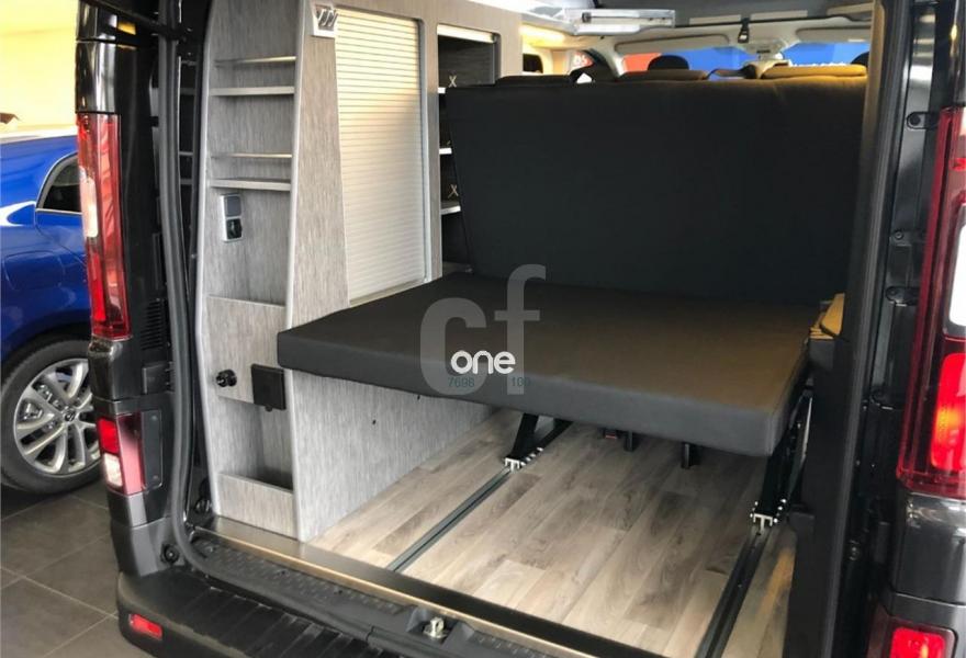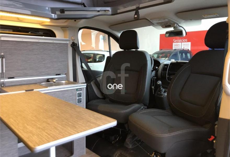 RENAULT Trafic, Diesel, año 2017, 1 kilómetros, color Negro metalizado, precio 49900€. Listado de equipamiento: Toma corriente 220v autónoma, Calefaccion autónoma eberspacher, Asiento cama vario 3000 con 3 plazas, Mobiliario lateral, Nevera coolmatic 40L, Instalacion de agua completa con fregadero y toma trasera de agua, Techo elevable Easyfit con cama superior, Portabicis Fianma portón trasero, Toldo Fianma F35. Ven a probarlo a Renault Leomovil, en la Carretera Madrid N601, km322 (Alto del Portillo), Valdelafuente, LEÓN. Leomovil, concesionario Renault y Dacia en León. PRECIO SUJETO A CONDICIONES DE FINANCIACION CON RCI BANQUE.