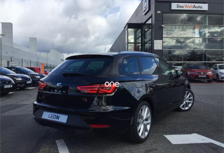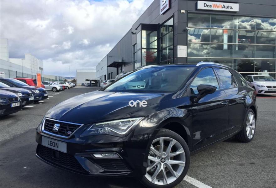 SEAT Leon, Gasolina, año 2018, 4 kilómetros, color Negro (Midnight) metalizado, precio 20950€. Negro con bordados rojos (tela),Llantas de aleación de 46cm (18") Performance 30/1,Negro Midnight (metalizado),Extensión de garantía de 3 años (100.000 km),Driving Assistance Pack: Asistentes de luces de carretera cortas/largas + Asistente de salida involuntaria de carril. SEAT León ST FR Advanced 1.4 TSI 150cv