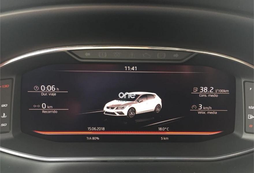 SEAT Leon, Gasolina, año 2018, 1 kilómetros, color Azul (Mistery) metalizado, precio 18300€. Paquete iluminación LED interior incluye: Luces delanteras de lectura LED + Luces LED en cortinilla parasol + Iluminación LED en zona de pies +Luces LED maletero+Guantera ilum LED,Techo interior en negro,Llantas de aleación de 46cm 18" Performance 30/2 Machined,Azul Mistery (metalizado),Cuadro de mandos Digital Cockpit,Extensión de garantía de 3 años (100.000 km),Gris (tela). SEAT León FR Plus 1.4 TSI 125cv