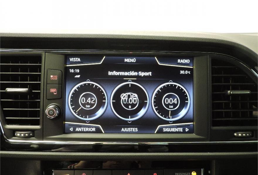 SEAT Leon, Gasolina, año 2018, 10 kilómetros, color Negro metalizado, precio 31000€. Negro Midnight (metalizado),Pintura metalizada,SEAT Sound System: incluye 9 altavoces + subwofer,SEAT Navi System + cartografia: pantalla táctil de 20,3cm (8"), Sonidos formato MP3 y WMA, 2 tomas USB, 2 tarjetas SD, Toma Aux-in, 8 altavoces yreconocimiento de voz.,Negro/Gris (alcantara/cuero),Advanced comfort & driving Pack: Asist luces de carretera cortas/largas + Asist salida involuntaria de carril + Control de crucero adaptativo + Front Assist con protección de peatones+ Asistente atascos + Asistente emergencias + Recon señales tráfico. VEHICULO PROCEDENTE DE FLOTA INTERNA.