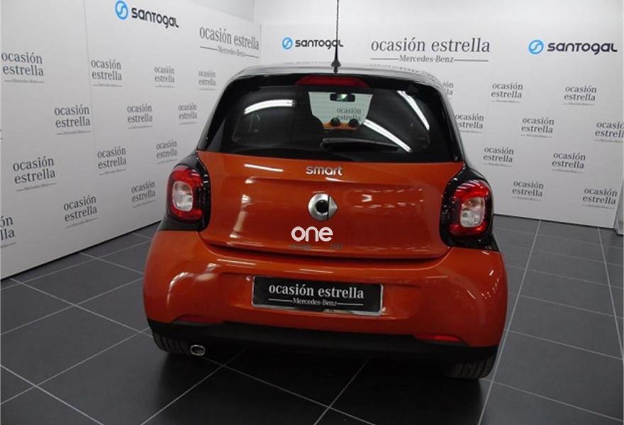 SMART forfour, Gasolina, año 2017, 200 kilómetros, color Naranja metalizado, precio 11500€. Alfombrillas de velours color negro,Tapizado de tela negro/naranja,Techo panorámico de cristal con parasol,Triángulo de emergencia,Depósito de combustible de 35 litros. 24 meses de garantía y posibilidad de ampliacion a 48 meses.
