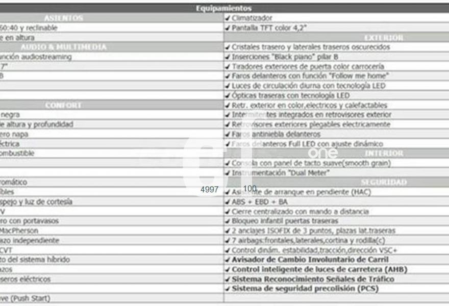 CONSULTE EQUIPAMIENTO completo, a destacar: Faros LED, Radio táctil con cámara de parking trasera, Pack de Seguridad (detector de cambio involuntario de carril, reconocimiento de señales de tráfico, luces largas y cortas automáticas, sistema precolisión)..
