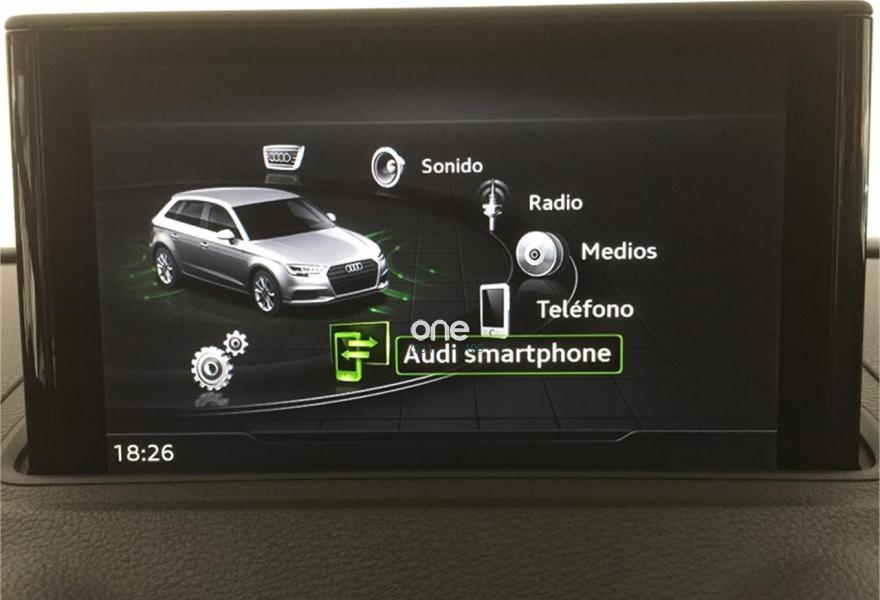 AUDI A3, Diesel, año 2018, color Blanco (Blanco Ibis) , precio 33890€. APS. Sistema de aparcamiento acústico plus con indicación selectiva y asistencia deaparcamiento,Paquete Black line,Asientos deportivos S,Inserciones en aluminio pulido "S",Paquete de iluminación interior,Audi smartphone interface,Interfaz eléctrica para uso externo, Aux-in y USB,Cable USB (accesorio obligatorio),Faros completos en tecnología LED,Lavafaros,Paquete brillo estilo negro,Paquete deportivo S line,Paquete exterior S line,Techo panorámico de cristal,Volante deportivo de tres radios multifuncional achatado en la parte inferior con levas para el cambio S tronic,Alerón de techo S line,Carcasa de los retrovisores exteriores en negro brillante,Blanco Ibis,Cristales oscuros en parte trasera,Retrovisores plegables eléctricamente,Rueda de repuesto de tamaño reducido (16"),Supsensión deportiva S line,Llantas de aleación ligera Audi Sport 8Jx19 diseño de 5 brazos en V en óptica de titanio mate con neumáticos 235/35 R 19. Equipado con: