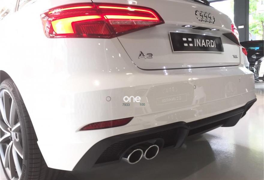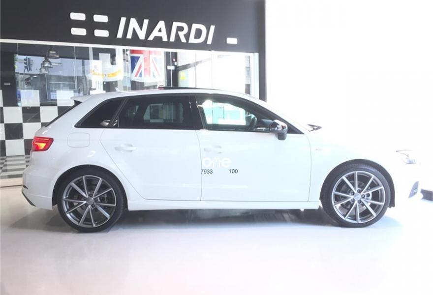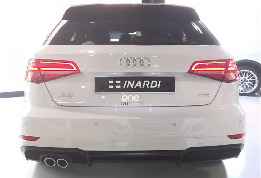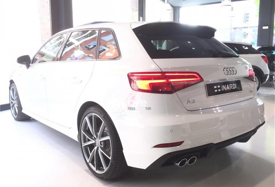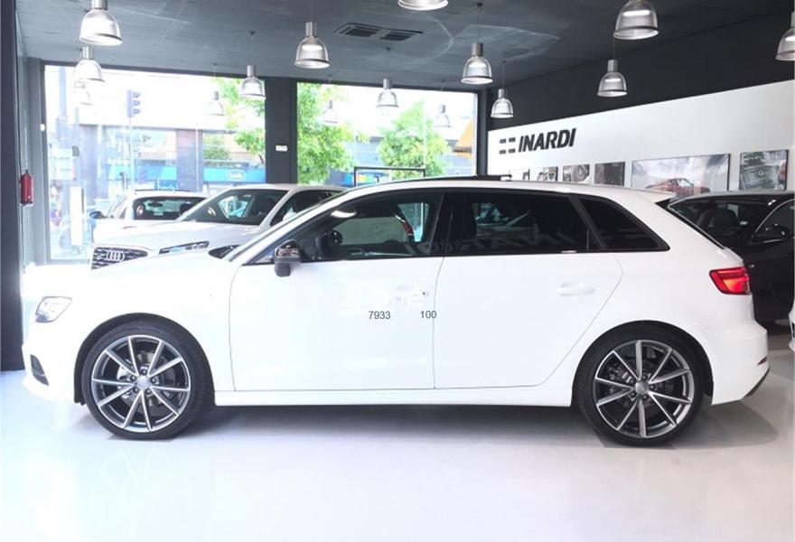 AUDI A3, Diesel, año 2018, color Blanco (Blanco Ibis) metalizado, precio 33890€. APS. Sistema de aparcamiento acústico plus con indicación selectiva y asistencia deaparcamiento,Paquete Black line,Asientos deportivos S,Inserciones en aluminio pulido "S",Paquete de iluminación interior,Audi smartphone interface,Interfaz eléctrica para uso externo, Aux-in y USB,Cable USB (accesorio obligatorio),Faros completos en tecnología LED,Paquete brillo estilo negro,Paquete deportivo S line,Paquete exterior S line,Techo panorámico de cristal,Volante deportivo de tres radios multifuncional achatado en la parte inferior con levas para el cambio S tronic,Alerón de techo S line,Blanco Ibis,Carcasa de los retrovisores exteriores en negro brillante,Cristales oscuros en parte trasera,Pintura metalizada,Retrovisores plegables eléctricamente,Supsensión deportiva S line,Llantas de aleación ligera Audi Sport 8Jx19 diseño de 5 brazos en V en óptica de titanio mate con neumáticos 235/35 R 19. Equipado con: