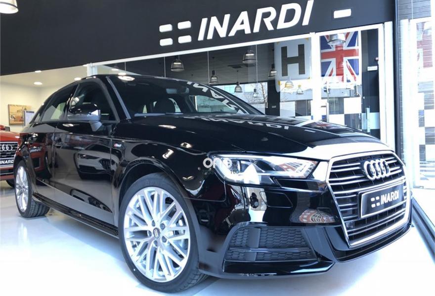 AUDI A3, Diesel, año 2018, color Negro , precio 32890€. APS. Sistema de aparcamiento acústico plus con indicación selectiva y asistencia deaparcamiento,Asientos deportivos S,Inserciones en aluminio pulido "S",Paquete de iluminación interior,Audi smartphone interface,Interfaz eléctrica para uso externo, Aux-in y USB,Cable USB (accesorio obligatorio),Faros completos en tecnología LED,Paquete deportivo S line,Paquete exterior S line,Techo panorámico de cristal,Volante deportivo de tres radios multifuncional achatado en la parte inferior con levas para el cambio S tronic,Alerón de techo S line,Negro Brillante,Retrovisores plegables eléctricamente,Llantas de aleación ligera 7,5Jx18 diseño de 20 radios con neumáticos 225/40 R 18. Equipado con: