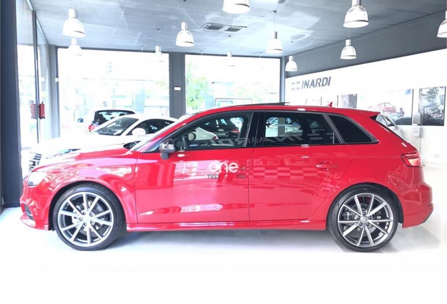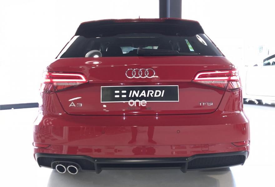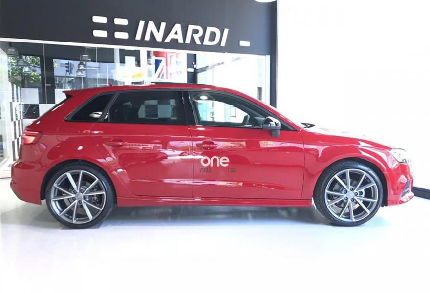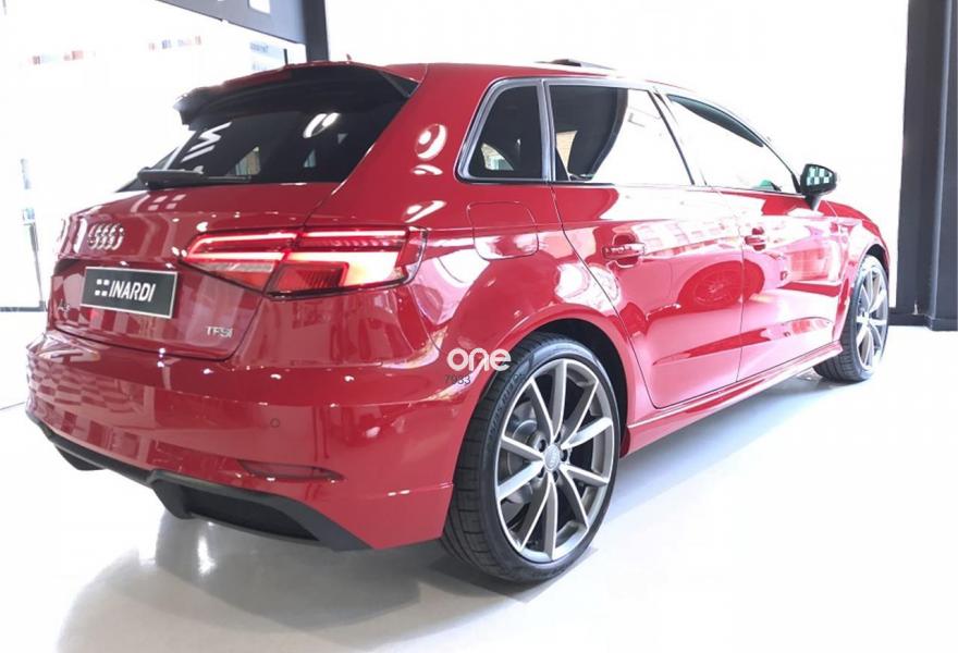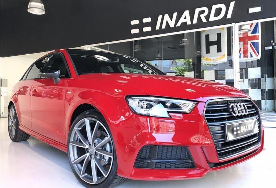 AUDI A3, Gasolina, año 2018, color Rojo (Rojo Tango metalizado) metalizado, precio 34590€. APS. Sistema de aparcamiento acústico plus con indicación selectiva y asistencia deaparcamiento,Paquete Black line,Paquete Tech,Asientos deportivos S,Inserciones en aluminio pulido "S",Paquete de iluminación interior,Interfaz eléctrica para uso externo, Aux-in y USB,Cable USB (accesorio obligatorio),Faros completos en tecnología LED,Lavafaros,Paquete brillo estilo negro,Paquete deportivo S line,Paquete exterior S line,Techo panorámico de cristal,Volante deportivo de tres radios multifuncional achatado en la parte inferior con levas para el cambio S tronic,Alerón de techo S line,Carcasa de los retrovisores exteriores en negro brillante,Cristales oscuros en parte trasera,Pintura metalizada,Retrovisores plegables eléctricamente,Rojo Tango (metalizado),Llantas de aleación ligera Audi Sport 8Jx19 diseño de 5 brazos en V en óptica de titanio mate con neumáticos 235/35 R 19. Equipado con: