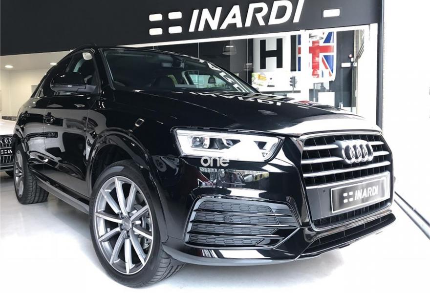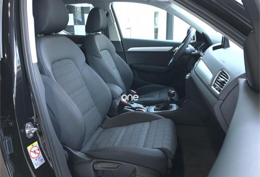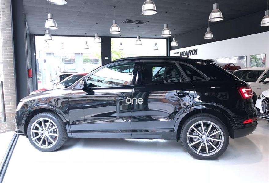 AUDI Q3, Diesel, año 2018, color Negro (Negro Mito Metalizado) metalizado, precio 35490€. Paquete Visión,Inserciones en aluminio mate cepillado,Audi music interface,Equipo de sonido Audi,MMI navegacion plus 3G,Cable USB,Faros de LED,Lavafaros,Paquete Black line,Paquete deportivo S line,Paquete estilo negro Audi exclusive,Paquete exterior S line,Paquete maletero,Paquete portaobjetos,Paquete portaobjetos y maletero,Tarjeta SD,Barras de techo en negro,Cristales tintados oscuros,Pintura efecto perla,Pintura metalizada,Retrovisores exteriores calefactables y plegables eléctricamente y con función antideslumbrante automática,Rueda de repuesto de tamaño reducido,Negro Intenso,Volante multifuncional de tres radios en diseño "Q" con levas para el cambio S tronic,Llantas de aleación 8,5J x 19 diseño de 10 radios óptica titanio mate, torneado brillante con neumáticos 255/40 R 19 (Audi Sport),Audi parking system plus,Audi parking system plus con camara de visión trasera. Equipado con: