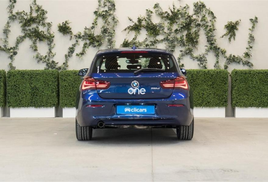 BMW Serie 1, Diesel, año 2018, color Azul metalizado, precio 22690€. Edition Sport Line Shadow,Servotronic,Tela 'Corner' Anthrazit/acentuación Grau/Schwarz,Volante deportivo de cuero,Sistema de navegación Business,Asientos deportivos para conductor y acompañante,Control de distancia en aparcamiento (PDC),Control de crucero con función de frenado,Shadow Line de brillo intenso BMW Individual,Neumáticos con funcionamiento en caso de avería,Asistente de luz de carretera,Climatizador,Paquete Executive,Retrovisor interior, con ajuste automático anti-deslumbramiento,Cuadro de instrumentos con contenido ampliado. Clicars: Nº1 en Europa en venta de coches online