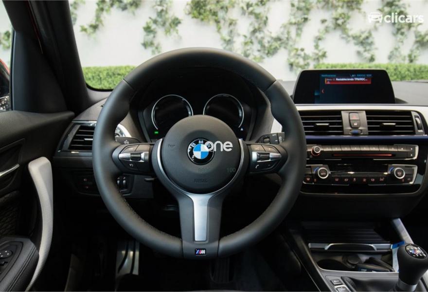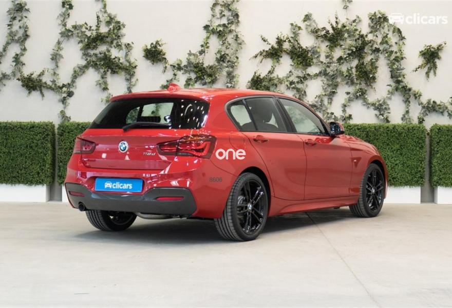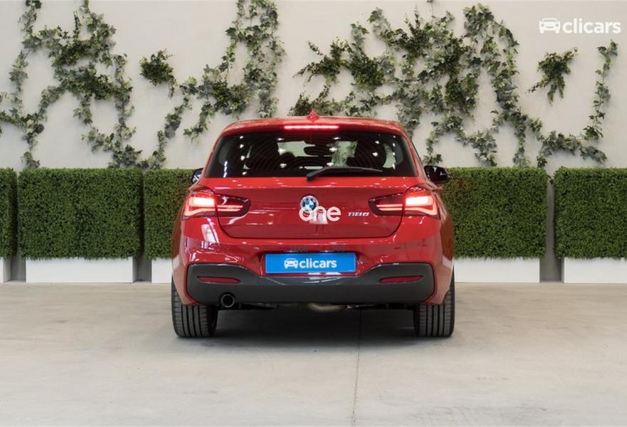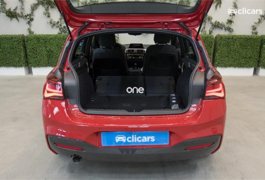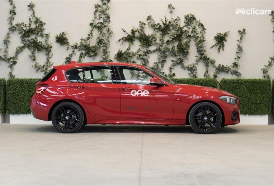 BMW Serie 1, Diesel, año 2018, color Rojo metalizado, precio 23390€. Pintura metalizada,Edition M Sport Shadow,18'', llantas de aleación ligera M de radios dobles (estilo 719 M) Jetblack,Asientos deportivos para conductor y acompañante,Servotronic,Molduras interiores Aluminium Hexagon con moldura con detalles en Blau mate,Control de distancia en aparcamiento (PDC),Control de crucero con función de frenado,Faros de LED,Faros antiniebla de LED,Suspensión deportiva M,Paquete aerodinámico M,Neumáticos con funcionamiento en caso de avería,Climatizador,Asistente de luz de carretera,Paquete Executive,Reproductor de CD,Sistema de navegación Business,Retrovisor interior, con ajuste automático anti-deslumbramiento,Volante M de cuero,Cuadro de instrumentos con contenido ampliado. Clicars: Nº1 en Europa en venta de coches online