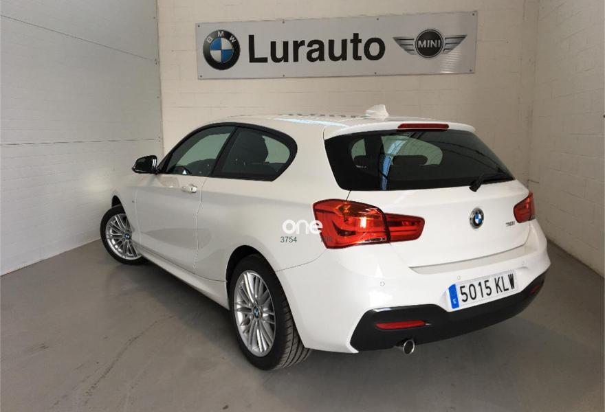 BMW Serie 1, Gasolina, año 2018, color Blanco metalizado, precio 23900€. 17" Llanta al.lig M radios dobles 460 M neum.dif.dim.,Control de presión de neumáticos,Volante multifunción, Neumáticos con funcionamiento en caso de avería (runflat),Reposabrazos delantero deslizable,Asientos deportivos para conductor y acompañante,Paquete de compartimentos,Paquete de compartimentos, Faros antiniebla de LED,Faros de LED,Reposacabezas traseros abatibles,Control de distancia de aparcamiento (trasero),Sensor de lluvia, incluyendo accionamiento automático de las luces de cruce,Control de crucero con función de freno,Paquete de iluminación,Llamada de Emergencia Inteligente,TeleServices,Servicios ConnectedDrive,Suspensión deportiva M,Paquete aerodinámico M,Shadow Line Individual, Cierre centralizado automático...Garantia oficial BMW hasta 06/2021 o 200.000 km.Concesionario oficial BMW Lurauto Guipuzkoa. .