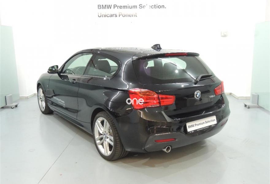 BMW Serie 1, Diesel, año 2018, color Negro (Saphirschwarz) metalizado, precio 27600€. Faros antiniebla de LED,Asientos deportivos para conductor y acompañante,Tela 'Hexagon'/Alcántara Anthrazit/Schwarz,Molduras interiores Aluminium con rectificado longitudinal fino con moldura de acentuación de color negro de brillo intenso,Caja de cambios Steptronic,Suspensión deportiva M,18", llantas de aleación ligera M de radios dobles (estilo 461 M) Ferricgrey metalizado,Sistema de carga de objetos largos,Climatizador,Dispositivo de alarma,Faros de LED,Guarnecido interior del techo BMW Individual antracita,Paquete aerodinámico M,Paquete de compartimentos,Paquete de iluminación,Paquete deportivo M,Retrovisor interior, con ajuste automático anti-deslumbramiento,Volante M de cuero,Shadow Line de brillo intenso BMW Individual,Asistente de luz de carretera,Cuadro de instrumentos con contenido ampliado,Sistema de navegación Business,Pintura metalizada,Acabado M Sport,Neumáticos sin funcionamiento en caso de avería,Servotronic. BMW PREMIUM SELECTION