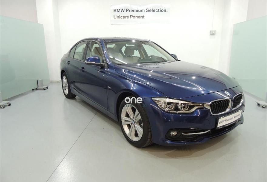 BMW Serie 3, Diesel, año 2018, color Azul (Mediterranean blau) metalizado, precio 29400€. Control de distancia en aparcamiento (PDC),Driving Assistant,17", llantas de aleación ligera de radios dobles (estilo 392),BMW Head-Up Display,Cuadro de instrumentos multifuncional,Mediterranblau (metalizado),Sport Line,Suspensión deportiva M,Asistente de luz de carretera,Combinación tela/cuero 'Breeze' Oyster,Dispositivo de alarma,Faros LED autoadaptables,Paquete de iluminación,Paquete de compartimentos,Pintura metalizada (excepto Estoril Blau),Volante deportivo de cuero,Sistema de navegación Professional,Asientos deportivos para conductor y acompañante,Combinación tela/cuero 'Breeze' Oyster Schwarz,Molduras interiores negro de brillo intenso con moldura de acentuación Korallrot mate,Reposabrazos central trasero. BMW PREMIUM SELECTION
