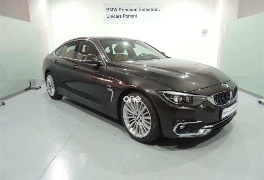 BMW Serie 4, Diesel, año 2018, color Marrón (Jatoba) metalizado, precio 45500€. Luxury Line,Jatoba (metalizado),Cuero Dakota Cognac/acentuación Braun Schwarz/Cognac,Revestimiento de madera noble 'Fineline' antracita con moldura de acentuación en cromo de brillo perlado,Acabado Luxury,Cuero 'Dakota' Cognac/acentuacion Braun,Paquete Executive,Sistema de navegación Professional,Retrovisor interior, con ajuste automático anti-deslumbramiento,Guarnecido interior del techo BMW Individual antracita,18", llantas de aleación ligera de radios múltiples (estilo 416),Caja de cambios Steptronic Sport,Cámara para marcha atrás,Speed Limit Info,Asistente de luz de carretera,Control de crucero con función de frenado,Cuadro de instrumentos multifuncional,Driving Assistant,BMW Head-Up Display,Dispositivo de alarma,Enganche de remolque,Sistema de altavoces HiFi,Soporte lumbar en los asientos delanteros,Asientos deportivos para conductor y acompañante,Calefacción de los asientos delanteros,Paquete de servicios ConnectedDrive,Control de distancia en aparcamiento (PDC),Neumáticos con funcionamiento en caso de avería. BMW PREMIUM SELECTION
