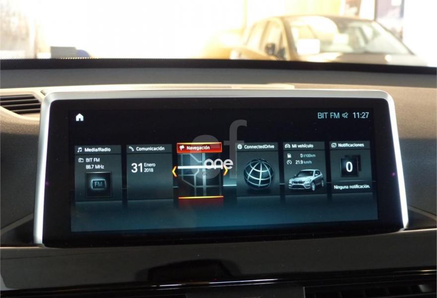 BMW X1, Diesel, año 2017, color Gris / Plata metalizado, precio 39900€. Navigation Plus,Faros LED con contenido ampliado,Glaciersilber (metalizado),BMW Head-Up Display,Control de distancia en aparcamiento (PDC) delantero y trasero,Cámara para marcha atrás,Suspensión deportiva M,Acabado Advantage,Espejos retrovisores interior y exteriores con ajuste automático anti-deslumbramiento,Techo de cristal panorámico,Volante deportivo de cuero,Telefonía de confort con conexión ampliada para smartphone,Respaldo del asiento del acompañante, abatible,Reglaje de los asientos traseros,Calefacción de los asientos delanteros,Soporte lumbar en los asientos delanteros,Sistema de altavoces HiFi Harman Kardon,Toma de corriente de 12 V adicional,Sintonizador DAB,Molduras interiores negro de brillo intenso con moldura de acentuación cromo de brillo perlado,Acristalamiento de protección solar,Volante calefactable,Depósito de combustible de mayor capacidad,Real Time Traffic Information,Red de separación del maletero,Accionamiento automático del portón trasero. A estrenar, muchos extras, PVP 48.153 €, matriculado el 22-12-2017, garantía hasta el 22-12-2020. Precio fiananciando con BMW Bank, 41.200 € sin financiar. Impuestos y transferencia icluidos. Archueta, concesionario oficial BMW en Navarra..