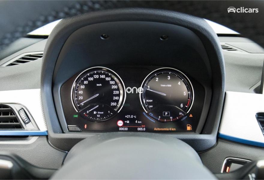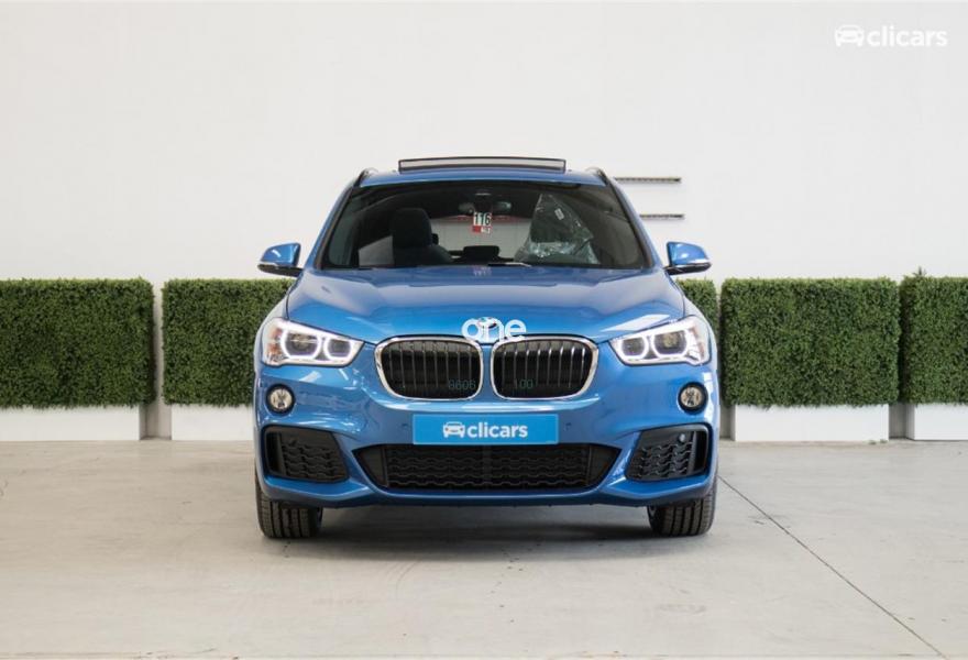 BMW X1, Diesel, año 2018, color Azul metalizado, precio 36390€. Paquete deportivo M,Paquete Executive Plus,Paquete Connectivity,Paquete Travel,Preparación para Apple CarPlay,Punto de acceso Wi-Fi,Reglaje de los asientos traseros,Tela 'Micro Hexagon'/Alcántara Anthrazit/Schwarz,Caja de cambios Steptronic Sport,Accionamiento automático del portón trasero,Asientos deportivos para conductor y acompañante,Soporte lumbar en los asientos delanteros,Control de crucero con función de frenado,Dirección deportiva M,Faros LED con contenido ampliado,Navigation Plus,Paquete aerodinámico M,Paquete de iluminación,Paquete de retrovisores exteriores,Retrovisor interior, con ajuste automático anti-deslumbramiento,Volante M de cuero,Suspensión deportiva M,Techo de cristal panorámico,Acristalamiento de protección solar,Carriles longitudinales para la baca BMW Individual Shadow Line de brillo intenso,Shadow Line de brillo intenso BMW Individual,Paquete de retrovisores interior y exteriores,Pintura metalizada,Acabado M Sport,BMW Head-Up Display,Asistente de aparcamiento,Cámara para marcha atrás,Control de distancia en aparcamiento (PDC) trasero,Neumáticos con funcionamiento en caso de avería,Real Time Traffic Information. Clicars: Nº1 en Europa en venta de coches online
