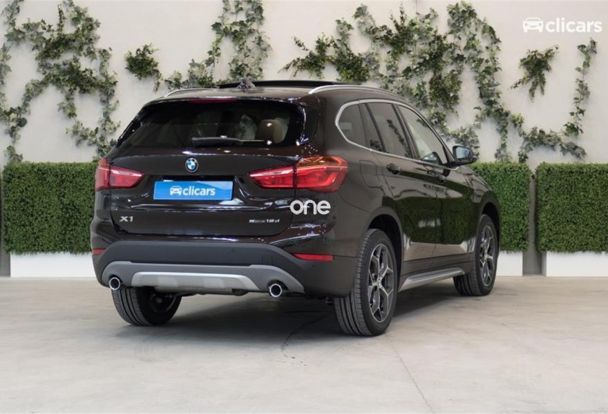 BMW X1, Diesel, año 2018, color Marrón metalizado, precio 35490€. Acabado xLine,xLine,Caja de cambios Steptronic,Paquete Executive Plus,Paquete Travel,BMW Head-Up Display,Techo de cristal panorámico,Control de distancia en aparcamiento (PDC) delantero y trasero,Cámara para marcha atrás,Asistente de aparcamiento,Control de crucero con función de frenado,Asientos deportivos para conductor y acompañante,Cuero 'Dakota' con perforación Oyster/acentuación Grau,18", llantas de aleación ligera de radios en Y (estilo 569),Reproductor de CD,Sparkling Brown (metalizado),Paquete de retrovisores exteriores,Reglaje de los asientos traseros,Red de separación del maletero,Faros LED con contenido ampliado,Volúmenes exteriores en aluminio satinado,Navigation Plus. Clicars: Nº1 en Europa en venta de coches online
