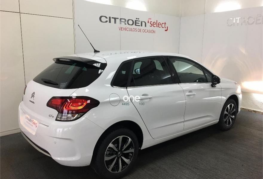 Espectacular C4 con una equipación muy completa. Pintura en blanco, sensores traseros para facilitarle el aparcamiento, retrovisores abatibles eléctricamente, detalles cromados, maletero de 408L, asientos muy confortables debido a su reglaje lumbar y estilo deportivo, luces y limpias automáticos, volante en cuero con todos los controles (regulador y limitador de velocidad, control de música, bluetooth...), climatizador BIZONA, Navegador Citroën Connect Nav (actualizaciones gratuitas de por vida)+ Mirror Screen (compatible con Apple Car Play y Android Auto), control por voz, entrada USB y lector de CD.