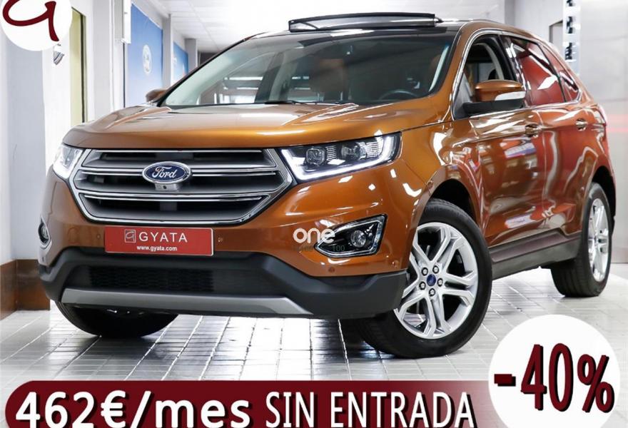 FORD Edge, Diesel, año 2017, color Rojo (Canyon Ridge) metalizado, precio 36900€. Pintura metalizada,Cuero Crema Tobacco,Cámara de visión delantera de 180º,Control de Crucero Adaptativo con Asistente pre-colisión que detecta peatones y ciclistas,Navegador SONY con pantalla de 8" + 12 altavoces + SYNC3 + USB,Paquete Edge X,Paquete cuero perforado Titanium,Paquete Luxury,Cinturones de seguridad traseros inflables,Paquete Parking,Alarma perimétrica,Detector de ángulos muertos BLIS,Gancho de remolque,Alfombrilla maletero. 3736965
