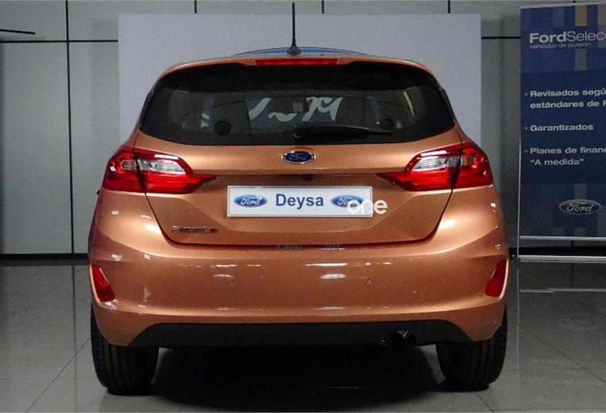 FORD Fiesta, Diesel, año 2018, color Naranja metalizado, precio 14100€. Techo panorámico,Paquete Visibilidad,Paquete Fumador,8"+ SYNC 3+Clima,Cobre (metalizado),FordProtect Life 7 años/100.000 km,Llantas de aleación 17",Elevalunas eléctricos traseros,Sistema apertura sin llave y botón de arranque Ford Power. En venta Ford Fiesta 1.5 TDCi 63kW (85CV) Titanium de color Cobre, un coche pequeño que combina polivalencia y versatilidad para los trayectos diarios en ciudad, y los de ocio por carretera. Un referente del segmento por su gran equipamiento tecnológico de serie, su diseño y su habitabilidad. La unidad anunciada, a estrenar, incluye techo panorámico, pantalla táctil de 20,3 cm (8") + SYNC3 + climatizador, sistema de apertura sin llave y botón de arranque Ford Power. El precio final mostrado incluye I.V.A y descuento por financiar. Precio contado: 15.600 €.