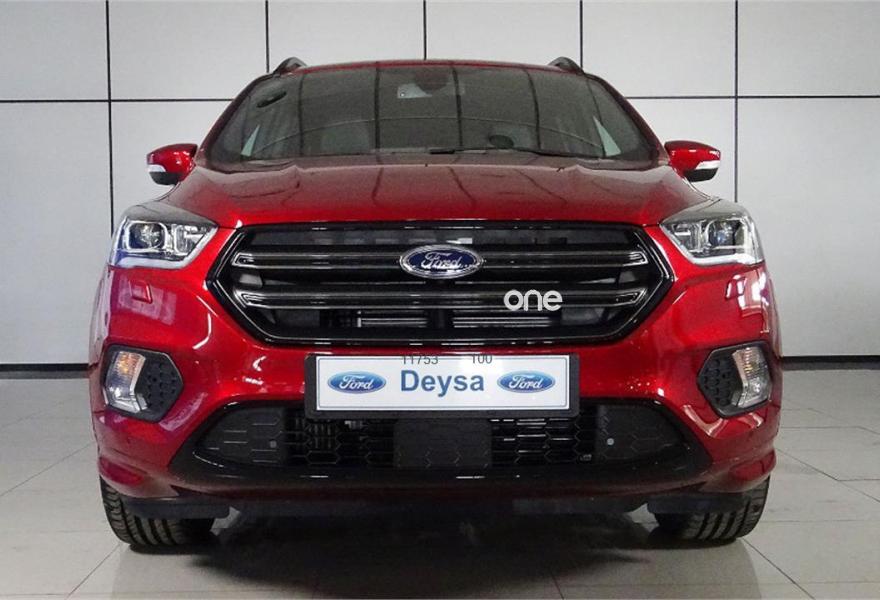 FORD Kuga, Diesel, año 2018, color Rojo metalizado, precio 25350€. Ajuste eléctrico en asiento de conductor (cuero parcial con alcántara),Paquete fumador,Cuero parcial Alcántara + ajuste eléctrico conductor,Cuero parcial con Alcántara,Luz interior Ford Ambient+,Navegador Sony con pantalla TFT 8" + 9 altavoces + SYNC3 + USB + Cámara visión trasera,Paquete Familiar,Portón manos libres,Llantas de aleación de 19" Absolute Black,Paquete ST-Line,Pintura Especial,Rojo Rubí (metalizada Plus),Rueda de repuesto mini,Cámara de visión trasera. En venta Ford Kuga 1.5 TDCi 88kW (120CV) 4x2 PowerShift ST-Line color Rojo Rubí, un SUV compacto de 5 plazas, a estrenar, que cuenta con tracción 4x2 y se alza como alternativa a familiares y monovolúmenes. Este todocamino compacto es uno de los referentes del segmento por su gran relación entre calidad, equipamiento y precio, además de por su mecánica ahorradora y eficiente. Lleva portón eléctrico, navegador Sony, cámara trasera... El precio final mostrado incluye I.V.A. y descuento por financiar. Precio contado: 27.850 €..