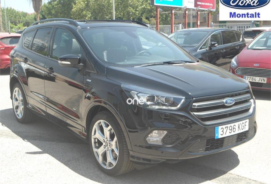 FORD Kuga, Diesel, año 2017, color Negro metalizado, precio 29000€. Apertura sin llave Ford KeyFree,Cuero parcial Alcántara + ajuste eléctrico conductor,Paquete Winter,Portón manos libres,Techo panorámico Open-air,Llantas de aleación de 19",Paquete ST-Line,Ford Protect Life 7 años/100.000 km,Cámara de visión trasera. AUTOS MONTALT S.A. CONCESIONARIO OFICIAL FORD EN VALENCIA CON MAS DE 40 AÑOS DE EXPERIENCIA. K.M.0 En perfecto estado. Matriculado el 21/12/2017 El precio incluye IVA y cambio de nombre. ** PRECIO OFERTADO SUJETO A FINANCIACION MINIMA DE 25.000€ A PARTIR DE 5 AÑOS. PAGO AL CONTADO; 32.000€ ** .