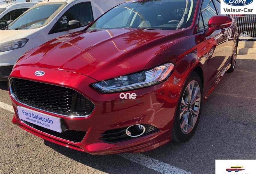 FORD Mondeo, Diesel, año 2018, color Rojo (RROJO RUBÍ) metalizado, precio 28900€. Paquete Cuero parcial ST-Line,Navegador 8" TFT SD táctil con SYNC 3,Cinturones de seguridad traseros inflables,Paquete LED ST-LINE,Reposacabezas 4 posiciones,Cristales privacidad,Pintura Especial Rojo Rubí,Pintura Metalizada,Rojo Rubí (metalizado),Ford Protect Life 7 años/100.000 km,Cámara de visión trasera,Sensor de parking delantero y trasero.