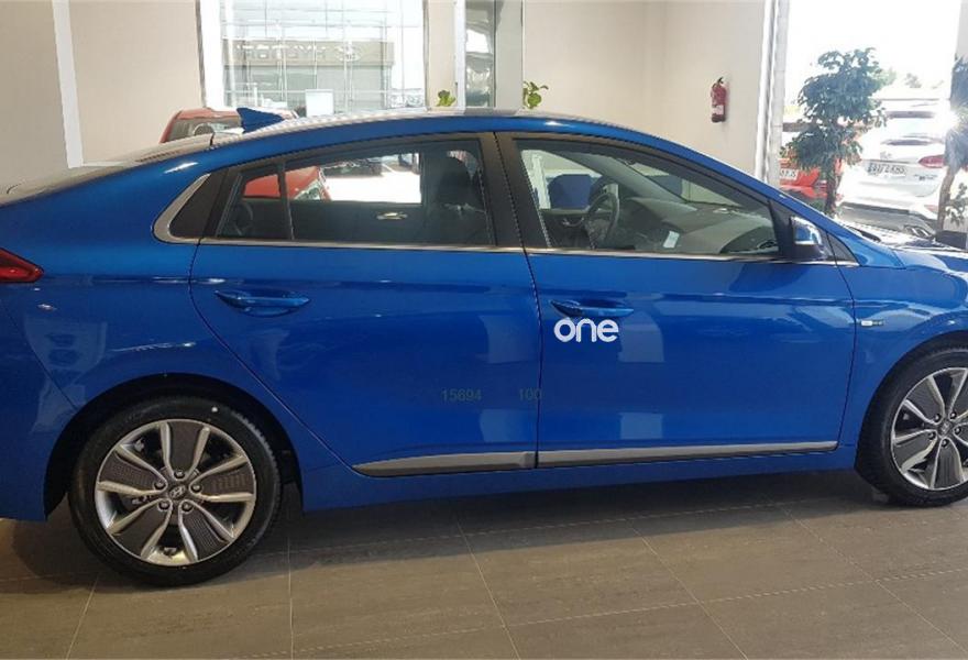 HYUNDAI IONIQ, Eléctrico / Híbrido, año 2018, color Azul metalizado, precio 21673€. Pintura a elegir. 5 Mantenimientos incluidos.