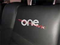 · Tapicería de cuero y ante perforado negro con logo en rojo.