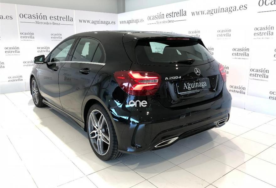 MERCEDES-BENZ Clase A, Diesel, año 2018, color Negro (NEGRO COSMOS) metalizado, precio 27490€. DYNAMIC SELECT,Línea AMG Line,Paquete de alumbrado y visibilidad,Paquete de integración smartphone,Paquete Retrovisores,Símil de cuero ARTICO /tela Messancy Negro,Techo corredizo panorámico eléctrico de cristal,Negro Cosmos (metalizado),Llantas de aleación AMG de 18" y 5 radios dobles, color gis titanio y pulidas a alto brillo, 225/40,7G-DCT cambio automático de doble embrague,Tren de rodaje de confort de altura rebajada,Cámara de marcha atrás con líneas de guía en la pantalla. ASESOR COMERCIAL RUBEN FERNANDEZ