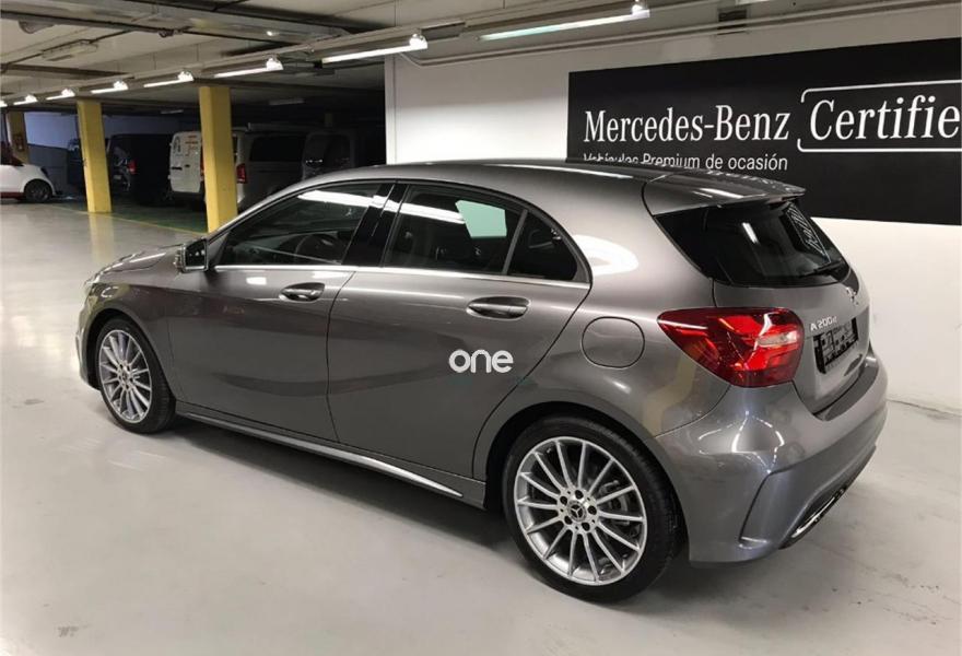 MERCEDES-BENZ Clase A, Diesel, año 2018, color Gris / Plata metalizado, precio 27900€. DYNAMIC SELECT,Navegador Garmin® MAP PILOT,Línea AMG Line,Luces de carretera automáticas,Símil de cuero ARTICO /microfibra DINAMICA Negro,Gris Montaña (metalizado),7G-DCT cambio automático de doble embrague,Cámara de marcha atrás con líneas de guía en la pantalla. AUTO OJA S.A. - CONCESIONARIO OFICIAL MERCEDES-BENZ y SMART EN LA RIOJA