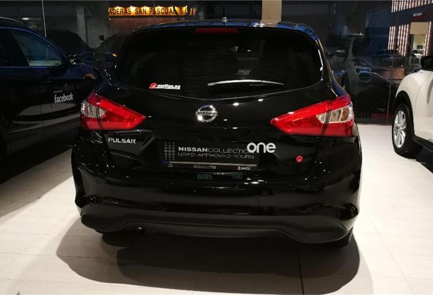 NISSAN PULSAR, Gasolina, año 2018, color Negro metalizado, precio 15900€. Tela y Piel Negra N-Connecta,Negro Azabache Metalizado. 6 airbags (frontales, laterales y de cortina), ABS+EBD+ESP, Faros de activación automática y sensor de lluvia, Control de crucero y limitador de velocidad, Fijaciones ISOFIX® en plazas traseras, Indicador de presión de neumáticos, Retrovisor interior con antideslumbramiento automático, Climatizador dual (conductor / acomp.), Volante y pomo del cambio en piel, Volante multifuncional, Luz de día, Faros antiniebla delanteros, Retrovisores color carrocería y regulables eléctricamente, Botón de arranque, Sistema Stop/Start, Pantalla Nissan Drive Assist (Ordenador de viaje con pantalla TFT en color de 5"), 6 Altavoces, Conectividad iPod® y Bluetooth®, Llave inteligente, Sistema anti-colisión frontal, Apps a través del Smartphone, Función Google™ Send-to-Car, Pantalla táctil de 5,8” , Sistema de navegación 3D, Cámara de visión trasera