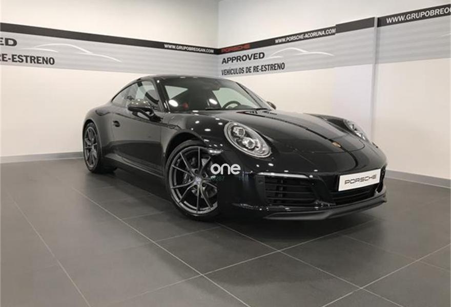 PORSCHE 911, Gasolina, año 2018, color Negro (Negro jet metalizado) metalizado, precio 141295€. Asientos delanteros calefactables,PorscheCommunication Management (PCM) inkl. Online-Navigation,Porsche Doppelkupplung (PDK) - Transmisón automática de doble embrague,Cinturones delanteros y traseros en rojo guardia,Control automático de velocidad,Indicador del límite de velocidad,Luces principales LED incluyendo Porsche Dynamic Light System Plus (PDLS Plus),Sitema ayuda aparcamiento delantero y trasero incl. cámara de marcha atrás,Techo eléctrico corredizo y deflector,Servodirección electromecánica,Eje trasero direccional,Paquete Sport Chrono,Llantas Carrera Sport de 20",Retrovisores interiores antideslumbrantes automáticos y sensor de lluvia,Paquete de iluminación interior,Anclaje para ISOFIX en asiento delantero derecho,Negro Jet Metalizado,Pintura metalizada. Concesionario oficial Porsche a Coruña.