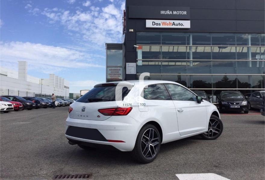 SEAT Leon, Gasolina, año 2017, color Blanco (Nevada) metalizado, precio 17900€. Full Link,Paquete iluminación LED interior incluye: Luces delanteras de lectura LED + Luces LED en cortinilla parasol + Iluminación LED en zona de pies +Luces LED maletero+Guantera iluminación LED,Negro con bordados rojos (tela),Llantas de aleación de 43cm (18") Performance 30/2 Machined,Driving Assistance Pack: Asistentes de luces de carretera cortas/largas + Asistente de salida involuntaria de carril. SEAT León SC FR Plus 1.4 TSI 125cv