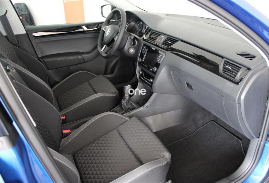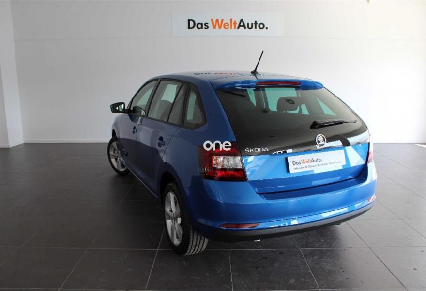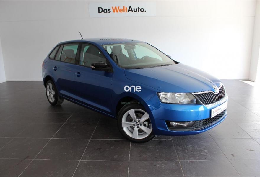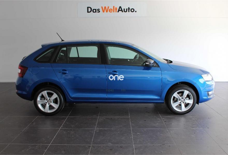 SKODA Spaceback, Gasolina, año 2018, color Azul metalizado, precio 16300€. Paquete cuero pequeño (volante de cuero SPORT multifuncional en diseño de 3 radios para radio y teléfono),Azul Race (metalizado),Rueda de repuesto.