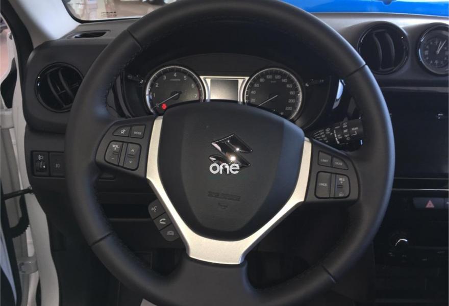 SUZUKI Vitara, Gasolina, año 2018, color Blanco , precio 15750€. Llanta de 17", pantalla táctil de 7", cámara trasera de aparcamiento, volante de cuero multifunción, control y limitador de velocidad, bluetooth.