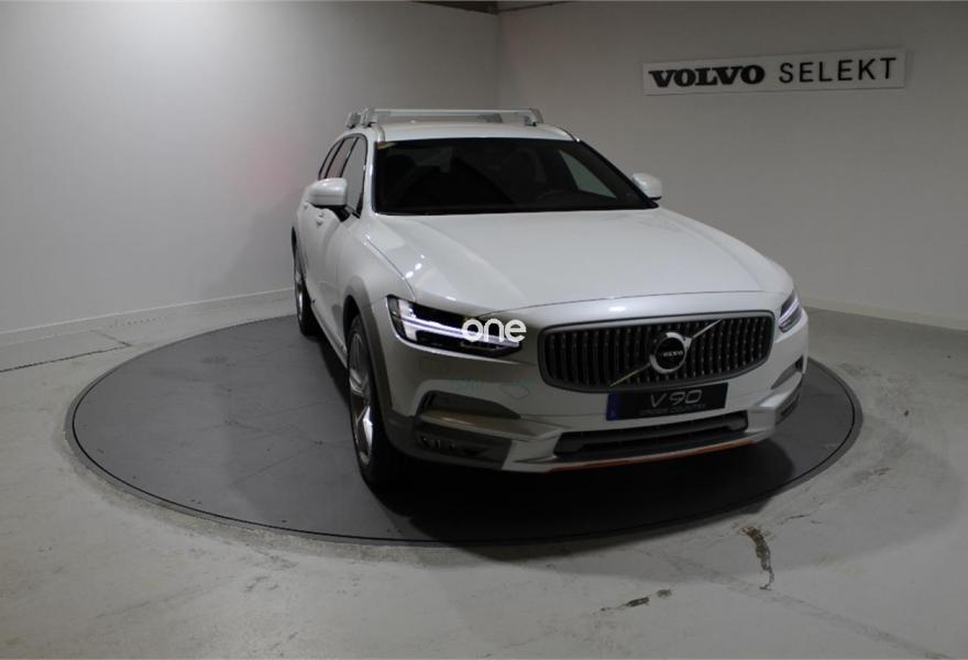 VOLVO V90 Cross Country, Gasolina, año 2018, color Blanco (crystal white) metalizado, precio 67000€. Cámara de aparcamiento 360º,Pack Climate Premium,Pack Family,Asientos traseros abaribles eléctricamente desde el maletero,Calefacción en asientos traseros,Pack Winter,Pack Business Pro VOC,Pack Light,Pack Versatility Pro,Cierre electrónico de seguridad para niños,Climatizador 4 zonas,Cubreobjetos automático,Intellisafe Surround,Retrovisores exteriores e interior antideslumbrantes eléctricamente,Volante deportivo cuero perforado,Volvo On Call,Chrystal White Metalizado,Cámara aparcamiento trasera. IMPRESIONANTE V90 CROSS COUNTRY VOLVO OCEAN RACE T5
