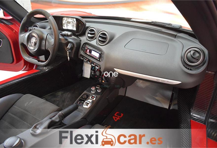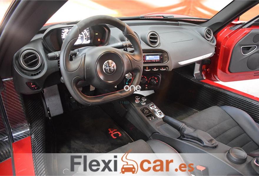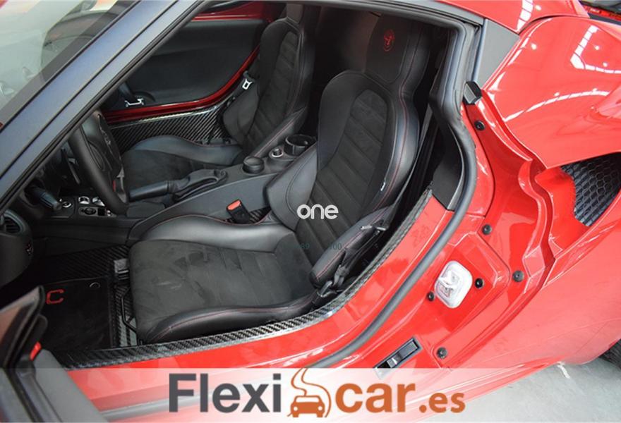 ALFA ROMEO 4C, Gasolina, año 2017, 5000 kilómetros, color Rojo metalizado, precio 52990€. Pack Racing,Tapicería en Piel: Negra,Pack Luxury,Asiento pasajero regulable,Protector instrumentación en fibra de carbono,Tapicería en Piel y microfibra negra con costuras rojas,Nuevos faros Bi-Xenon,Pinzas de freno pintadas en rojo,Suspensiones Sport,Toma de aire en fibra de carbono,Volante deportivo,Llantas de aleación 18"-19" (Delante-Atrás),Naumáticos Racing,Rosso Competizione (tricapa),Spoiler en color de la carrocería,Tubo de escape Racing,Extintor,Kit de primeros auxilios,Triángulos emergencia. FLEXICAR: Más de 1500 coches en stock