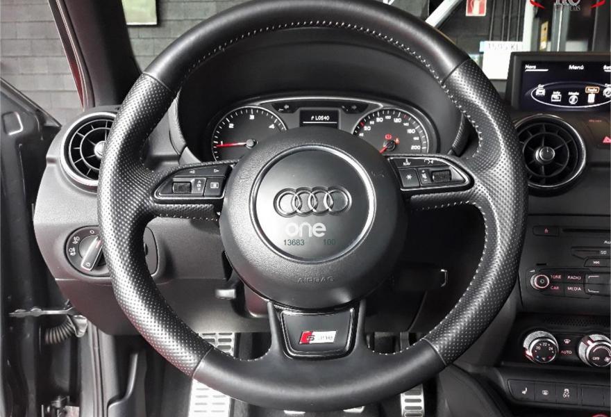 AUDI A1, Diesel, año 2013, 105000 kilómetros, color Gris / Plata metalizado, precio 16990€. Paquete Sport,Asientos delanteros calefactables,Asientos S (buckets),Recubrimiento de las salidas de aire, carcasa del espejo interior y manillas de las puertas, en color Gris Daytona,Reposapiés y pedalería en acero inoxidable,Revestimiento interior del techo en negro,Tapicería de cuero nappa fina individual (Audi exclusive),Radio Concert,Volante deportivo de tres radios multifuncional,Aro del volante en cuero especial (Audi exclusive),Faros de xenón Plus,Paquete deportivo S line,Paquete estilo color negro,Recubrimiento de las salidas de aire en óptica de aluminio,Retrovisor interior antideslumbramiento,Sistema de aviso de presión de los neumáticos,Cristales oscuros en parte trasera (Audi exclusive),Gris Daytona Audi exclusive (metalizado),Llantas de aleación ligera 7,5Jx18 diseño de 5 radios Rotor óptica titanio con neumáticos 225/35 R18 (Audi exclusive),Pintura gris Daytona metalizada Audi exclusive,Pintura metalizada,Sin inscripción trasera de modelo y tecnología,Suspensión deportiva S line,Sistema de aparcamiento acústico trasero (APS). AUDI A1 2.0 TDI SLINE 140CV en color exterior gris Daytona metalizado y con el interior deportivo completamente en cuero Napa negro.
