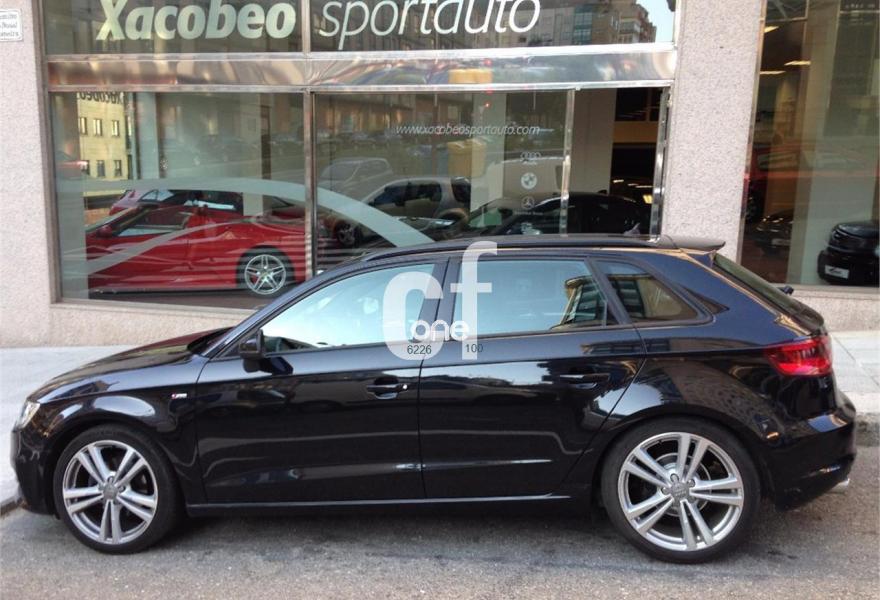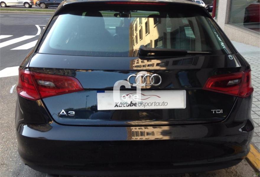 AUDI A3, Diesel, año 2013, 138000 kilómetros, color Negro metalizado, precio 19990€. Paquete Vision,Asientos delanteros calefactables,Asientos deportivos S delanteros,Cuero napa fina con grabado S line,Dispositivo de carga para objetos largos,Revestimiento interior del techo en negro,Tapicería tela "Biathlón" / Cuero,Audi Phone Box,Equipo de sonido Audi Sound System,MMI navegación plus con MMI Touch,Paquete Connectivity,Paquete navegación (Navegador básico),Radio digital,Volante deportivo de tres radios multifuncional achatado en la parte inferior,Dispositivo del gancho de remolque,Audi connect,Asistente para las luces de carretera,Control automático de velocidad (Tempomat),Faros completos en tecnología LED,Faros de xenón plus,Lavafaros,Paquete de iluminación interior,Paquete deportivo S line,Paquete estilo negro,Paquete exterior S line,Paquete portaobjetos,Retrovisor interior antideslumbrante con sensor de luces y lluvia,Sistema de aviso de presión de los neumáticos,Tela Biathlón/Cuero Negro,Volante deportivo de tres radios multifuncional,Barras laterales en el techo en colo negro,Llantas de aleación ligera 7,5Jx18 diseño de 5 radios "Dynamic" con neumáticos 225/40 R 18,Negro Phantom (efecto perla),Pintura efecto perla,Pintura metalizada,Preparación para el gancho de remolque,Retrovisores calefactables y plegables electrónicamente,Retrovisores calefactables, plegables electrónicamente y con lado conductor con regulación antideslumbrante automática,Tornillos de rueda antirobo,Supsensión deportiva S line,Volante deportivo de tres radios multifuncional para el cambio S tronic achatado en la parte inferior,Airbags laterales traseros. vehículo cinco puertas en excelente estado tanto exterior como interior, automático (Stronic) con levas en volante, Sline exterior e interior, navegación, multimedia MMI, volante multifunción de cuero achatado, llantas aleación en 18", luces led, bi-xenón, bluetooth, asientos deportivos de cuero negro/tela combinada calefactables, gancho remolque original escamoteable, control de velocidad, etc. xacobeosportauto.com.